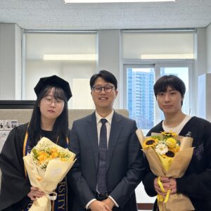 Next 〉 l⊙⊙K B!O [축! 졸업] 2025학년도 전기 학위수여식 개최 26.02.19 · 교수님과 학생, 학부모가 함께한 축하의 자리 · 연구실 학부 연구원 박소연·정호진 학생 졸업 · 졸업생들의 새로운 출발을 응원하며 마무리됨